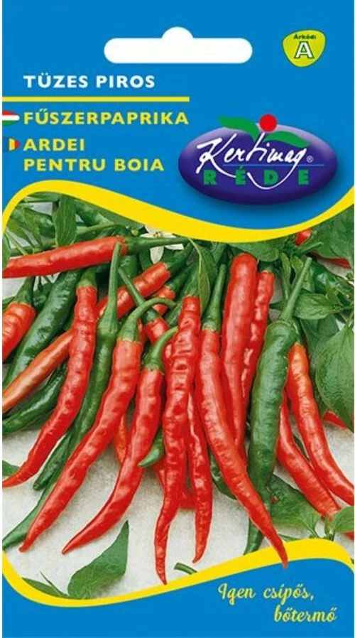 A Tüzes piros fűszerpaprika egy hagyományos magyar fajta, amelyet kifejezetten csípős ízéért nemesítettek. Magyarország paprika-kultúrája világszerte ismert, és ez a fajta jól illeszkedik ebbe a hagyományba. A fajta egyik legfontosabb jellemzője a rendkívüli ellenálló képesség. Vegyszermentes termesztésre kifejezetten alkalmas. Közepes növekedésű, így kis és nagy kertekben egyaránt könnyen nevelhető. A növény csüngő termésű, ami megkönnyíti a szedést. Bogyói hosszúkásak, körülbelül 10 cm-esek. Ceruza vastagságú terméseik egyenletesen fejlődnek. Színük fejlődésük során középzöldről élénkpirosra vált. A teljes éréskor kapja meg azt a jellegzetes, élénk színt, amely a magyar fűszerpaprika védjegye. A fajta csípőssége kiemelkedően intenzív. Íze nemcsak erős, hanem gazdag aromájú is. Szárítás után fűszerként kivételes minőségű őrleményt ad. Konyhai felhasználása nagyon sokoldalú. Pörköltek, levesek, kolbászok ízesítésére is kiváló. Csípős paprikapépek, krémek alapja is lehet. Savanyításkor is jól ízesít. A friss paprika aprítva vagy karikázva pikáns kiegészítője ételeknek. A magyar konyha csípős fogásainak elengedhetetlen hozzávalója. A fajta rendkívül ellenálló a környezeti hatásokkal szemben. Jól bírja a meleget. Szárazságtűrőbb, mint sok más fajta. Szabadföldben helybe vetve is megbízhatóan fejlődik. A hobbikertészek körében emiatt különösen népszerű. Kevés gondozással is jó termést ad. A növény szereti a sok napsütést. A meleg hatására gyorsabban színeződik. Betegségekre kevéssé érzékeny. A termések hosszan tárolhatók, főként szárított formában. Szárítva intenzívebbé válik az íze és a színe. A fajta egyik előnye a stabil hozam. Évről évre megbízhatóan terem. Az érett termések fűszer sokféleségének alapanyagát adhatják. A Tüzes piros paprika erőteljes, karakteres fajtát keresőknek ideális. Városi és vidéki kertekben egyaránt jól teljesít. Felhasználása minden konyhában szenvedélyt és karaktert visz az ételekbe. A magyar gasztronómia egyik alapfajtája marad. A Tüzes piros paprika nemcsak csípős, hanem kiváló minőségű fűszert adó növény. Termesztése egyszerű, élménnyé teszi a kertészkedést. A fajta évtizedek óta a hagyományos magyar paprikaerő egyik legjobb példája. A Tüzes piros sokoldalú és megbízható fajta mind kezdőknek, mind haladóknak.config_title]