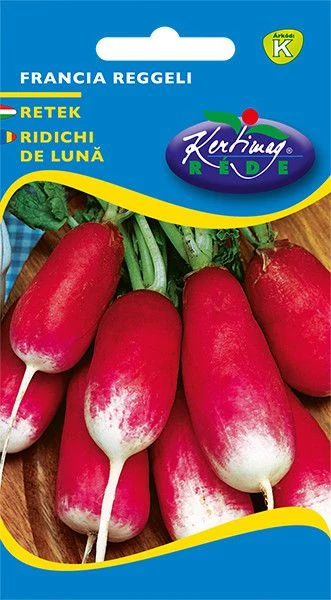 A Retek "Francia reggeli" egy Európában régóta ismert és kedvelt fajta, amely különleges hengeres formájáról és élénkpiros-fehér színéről vált híressé. Nevét arról kapta, hogy Franciaországban gyakran fogyasztották reggeli mellé vagy akár magában, friss kenyérrel, vajjal és sóval. Eredete a francia konyhakultúrához kapcsolódik, ahol a friss, ropogós zöldségeknek kiemelt szerep jut. Ez a retekfajta gyors fejlődésével és könnyű termeszthetőségével már korán elterjedt egész Európában. Különösen kedvelt a tavaszi és kora nyári időszakban, de megfelelő öntözéssel egész szezonban termeszthető. A fajta egyik legnagyobb előnye, hogy nem hajlamos a pudvásodásra, ami sok más nyári retek hátránya. A gumó hengeres alakú, ami kényelmes szeletelést és látványos tálalást tesz lehetővé. Élénkpiros színe és fehér végződése friss, étvágygerjesztő megjelenést ad neki. Íze enyhén csípős, de nem túl erős, így széles körben kedvelt. Felhasználása rendkívül sokoldalú, hiszen salátákban, szendvicsekben, hidegtálakon vagy akár önmagában is kiváló. A friss fogyasztás mellett a retek levele is hasznosítható például levesek, saláták vagy pestók készítésében. A gumók magas víztartalmuk miatt különösen frissítőek, ami nyári hőségben előnyös. Könnyen párosítható vajjal, joghurtmártással vagy ecetes dresszingekkel. A "Francia reggeli" retek a gasztronómiában dekorációként is használható különleges formája miatt. Gyermekek számára is kedvelt zöldség, mivel szelídebb ízű. A fajta régóta stabil szereplője a házikerti veteményeseknek. A piacokon és zöldségeseknél is rendszeresen megtalálható. Kiválóan alkalmas gyors frissítők, mártogatós tálak vagy zöldségmixek összeállításához. Fogyasztása hozzájárul a vitamin- és ásványianyag-bevitelhez. A retek rosttartalma segíti az emésztést. A "Francia reggeli" retek különösen ajánlott azoknak, akik enyhén csípős, friss, ropogós zöldséget keresnek mindennapi étkezéseikhez. A fajta megbízhatósága és állandó minősége miatt termesztők és fogyasztók egyaránt nagyra tartják. A francia eredet büszkeségre ad okot, hiszen ez a fajta a hagyományos európai konyhák egyik alapzöldsége. A könnyű kezelhetőség miatt kezdők számára is ideális. A felhasználási lehetőségek szélesköre a modern konyhákban is népszerűvé teszi. Édeskés-csípős aromája egyedülálló. A változatos tálalási lehetőségeknek köszönhetően gyakran szerepel ételfotókon és magazinokban is. Mindennapos fogyasztásra alkalmas, akár uzsonnásdobozba is csomagolható.